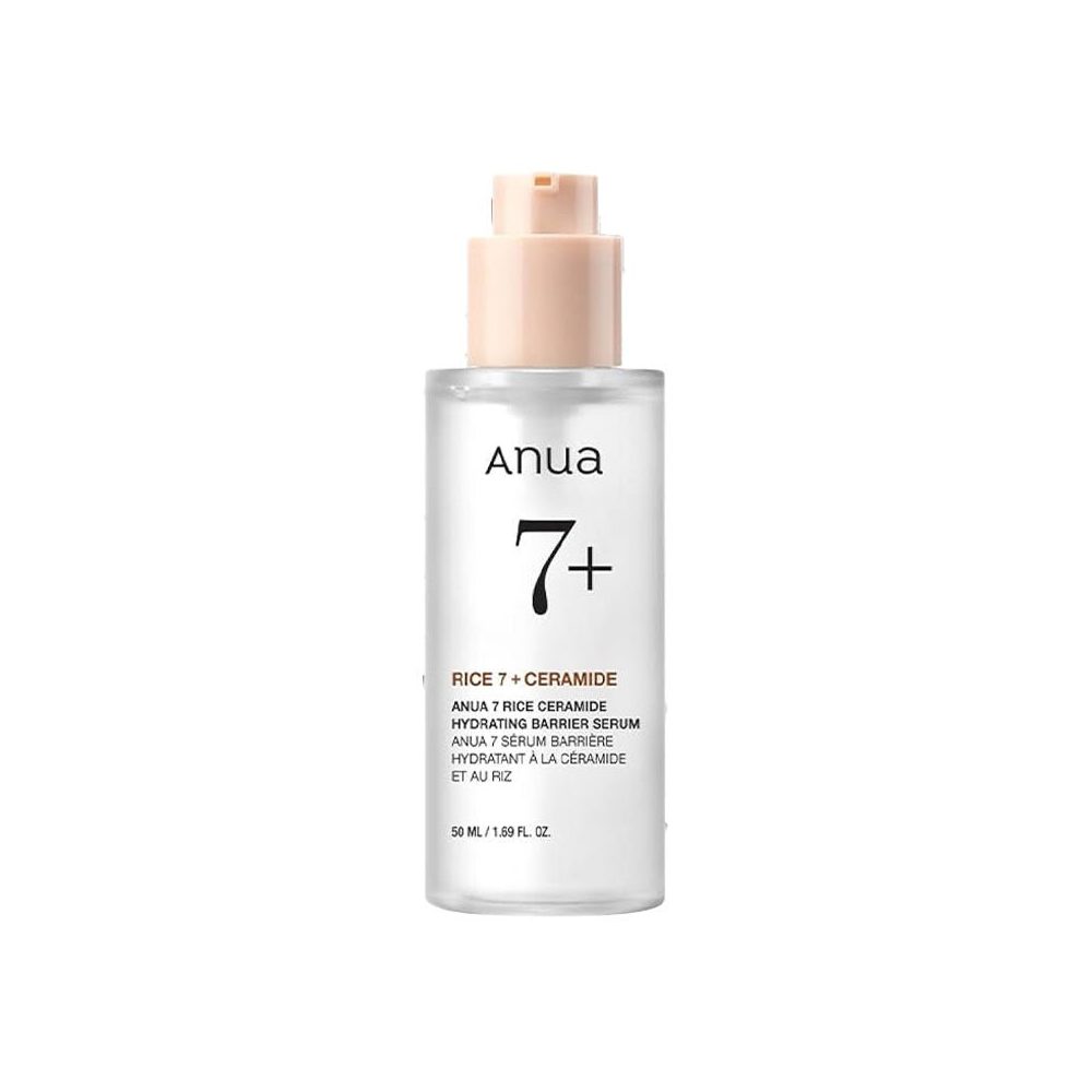Anua 7 Rice Ceramide Hydrating Barrier Serum is a fragrance-free nourishing serum formulated with Oryza Sativa (Rice) Bran Water and Ceramide NP to hydrate chapped skin and prevent moisture loss, maintaining skin elasticity and barrier function. Made suitable for all skin types.