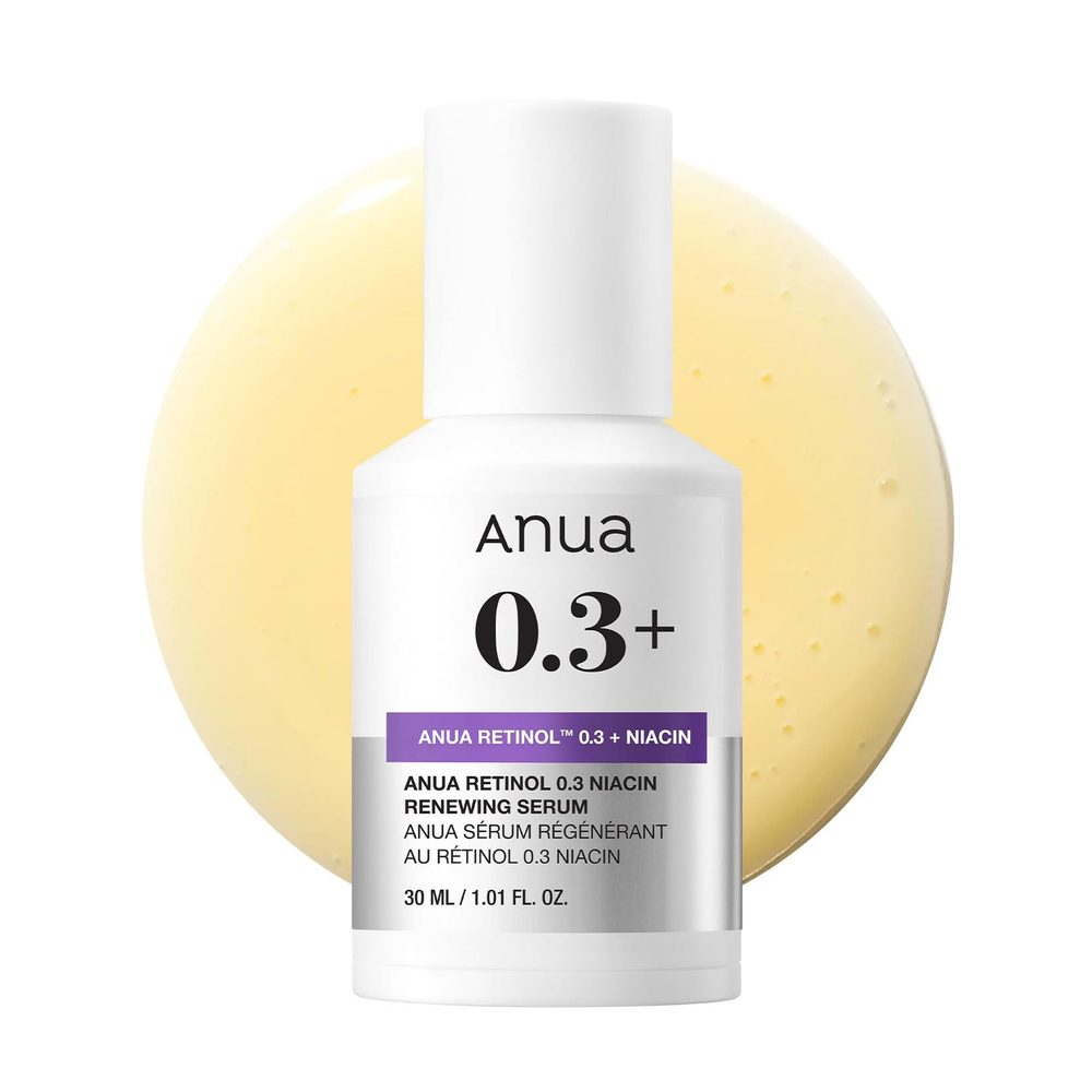 Anua Retinol 0.3% + Niacin Renewing Serum is a potent brightening serum infused with Retinol and Niacinamide to smooth out fine lines and improve hyperpigmentation, while restoring skin elasticity.
