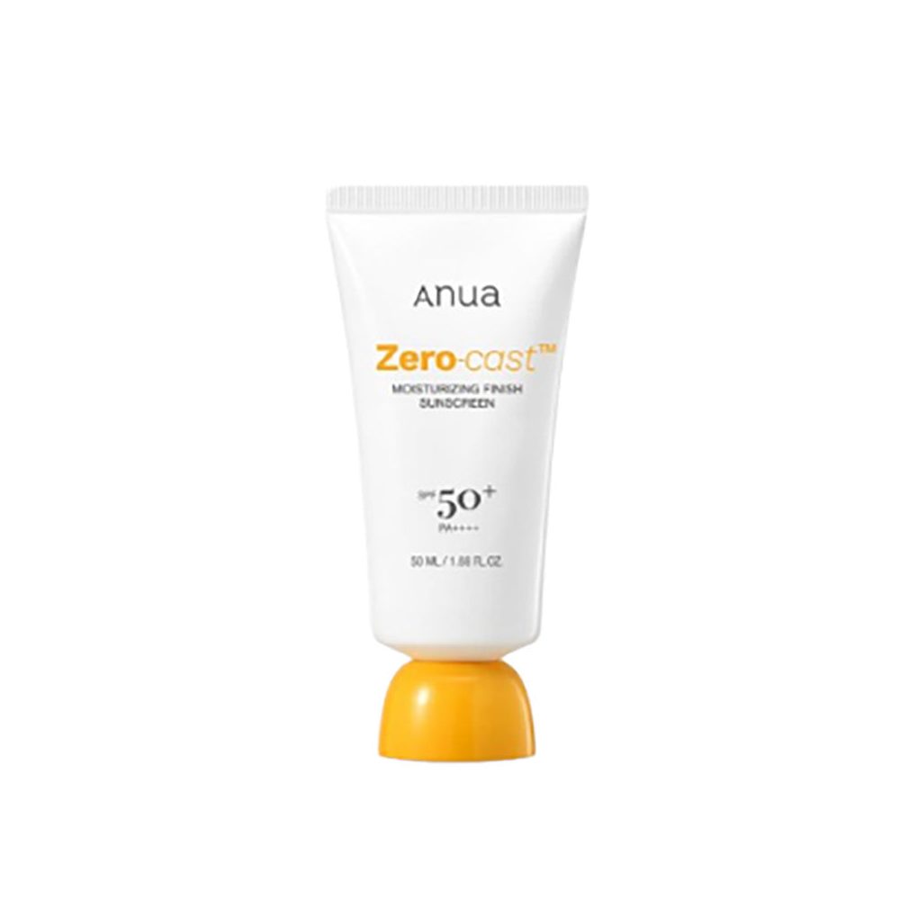 Anua Zero-Cast Moisturizing Finish Sunscreen hydrates and protects skin leaving a glowy finish.